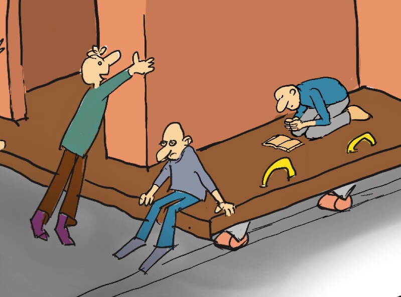 Het beeld van de drie bij elkaar geeft veel weer: “een werker, een bidder en iemand die het niet meer weet”.