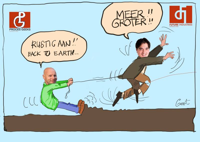 De één (Robin ) wil graag snel, meer en groter, de ander (Martijn) hield hem met de voeten op de grond.