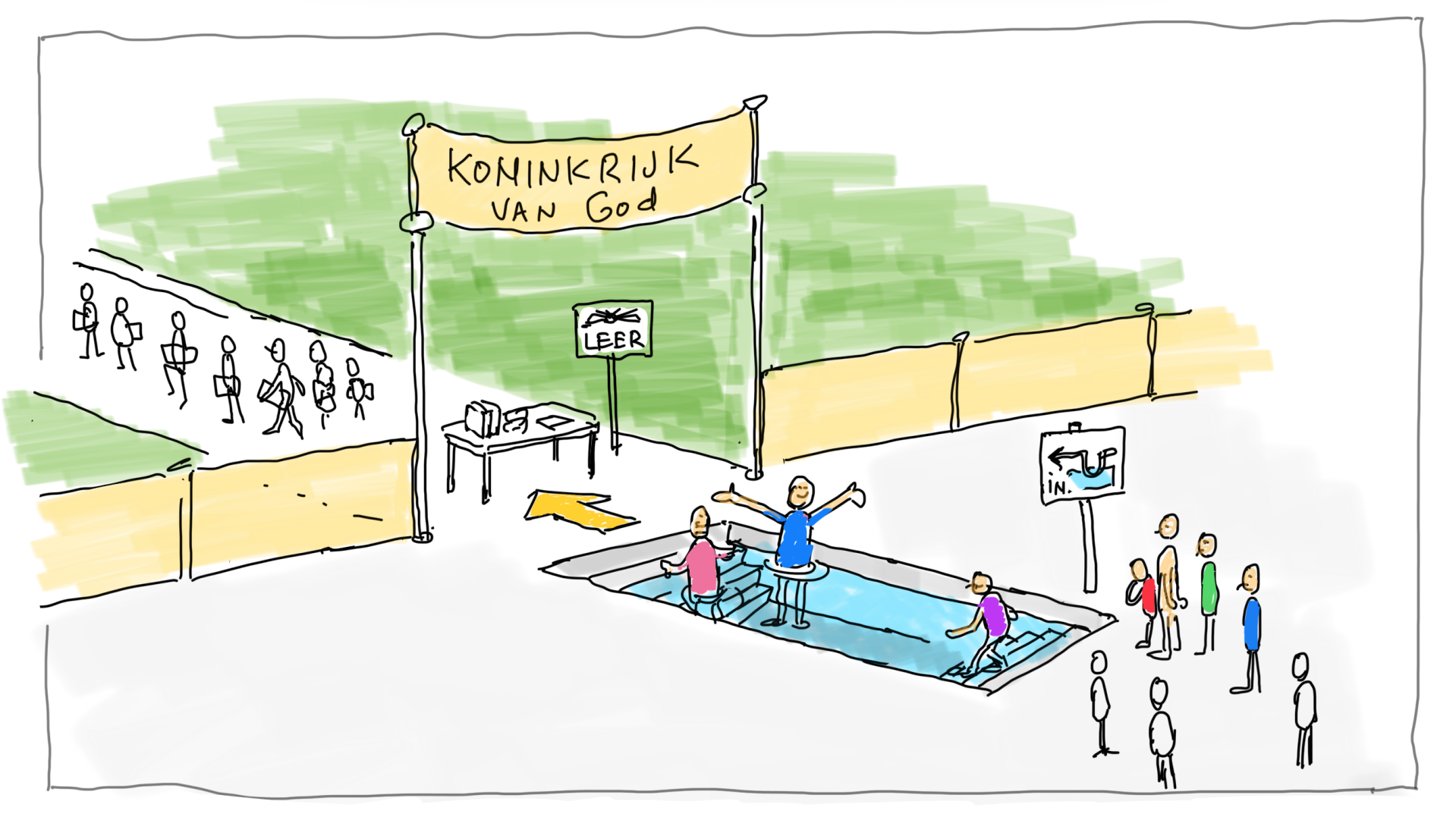 Het Koninkrijk van God ga je in door de doop en dan volgt onderwijs (Mat28:19).
