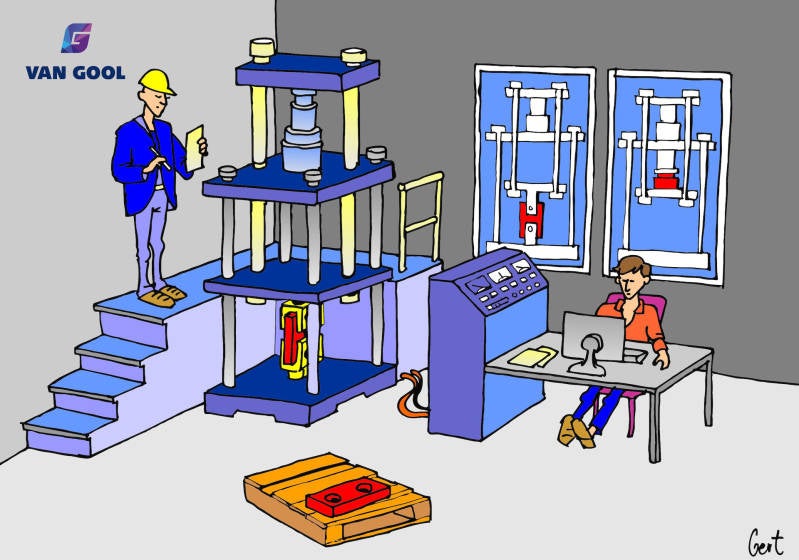 Voor de firma van Gool hef- en hijstechniek heb ik een tekening gemaakt, waarmee ze hun nieuwste aanwinst promoten: een kalibratiebank voor compressie lastmeters / trekcellen van Straightpoint/Crosby. Voor een uiterst nauwkeurige (klasse 1) meting van tot wel 350 ton.