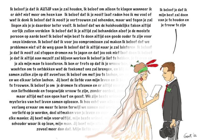 En dan gaan ze elkaar heel veel beloven, bovenop wat ze aan de overheid- of kerkelijke instantie moeten beloven.