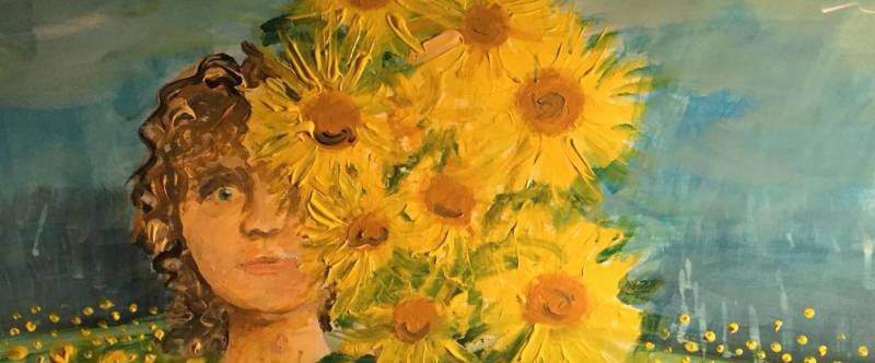 2019Opdracht tijdens de cursus aan de VAN.Oefenen met het tekenen van bloemen.50 x 65 cm, Acryl op papier.