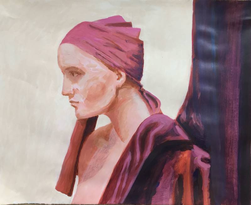 Thema bij de V.A.N. is het schilderen van de structuur van stof (kleding), met plooien, vouwen enz. Ons model was een etalagepop.