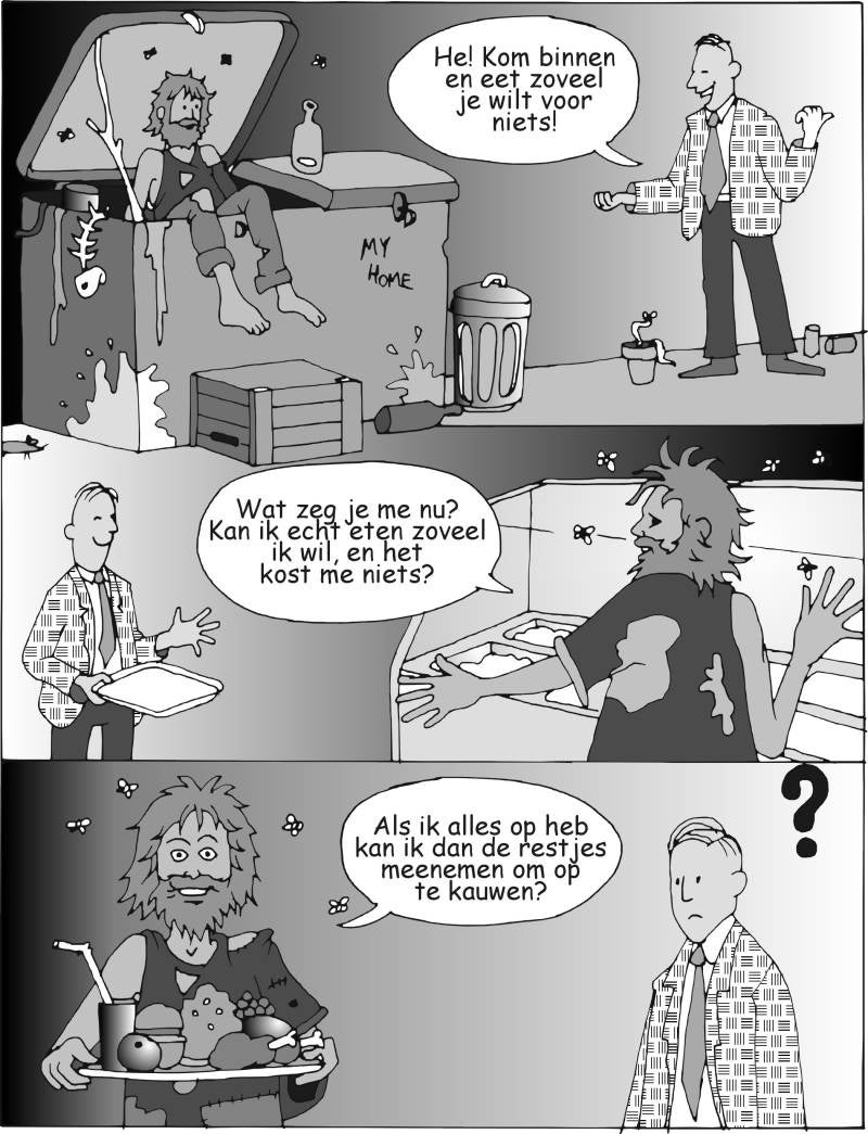Cartoon, nevenstaande is een oudere variant (in kleur). In het boek is een zwart-wit versie gekomen.