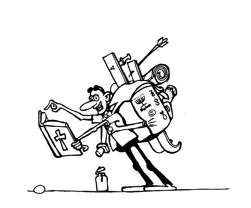 Voor het jeugdblad 'Op Weg' heb ik een aantal jaren tekeningen gemaakt die bij een verhaal hoorden. De verhalen staan hier niet bij. Het is daarom wel vaak gissen naar de betekenis van het geïllustreerde.