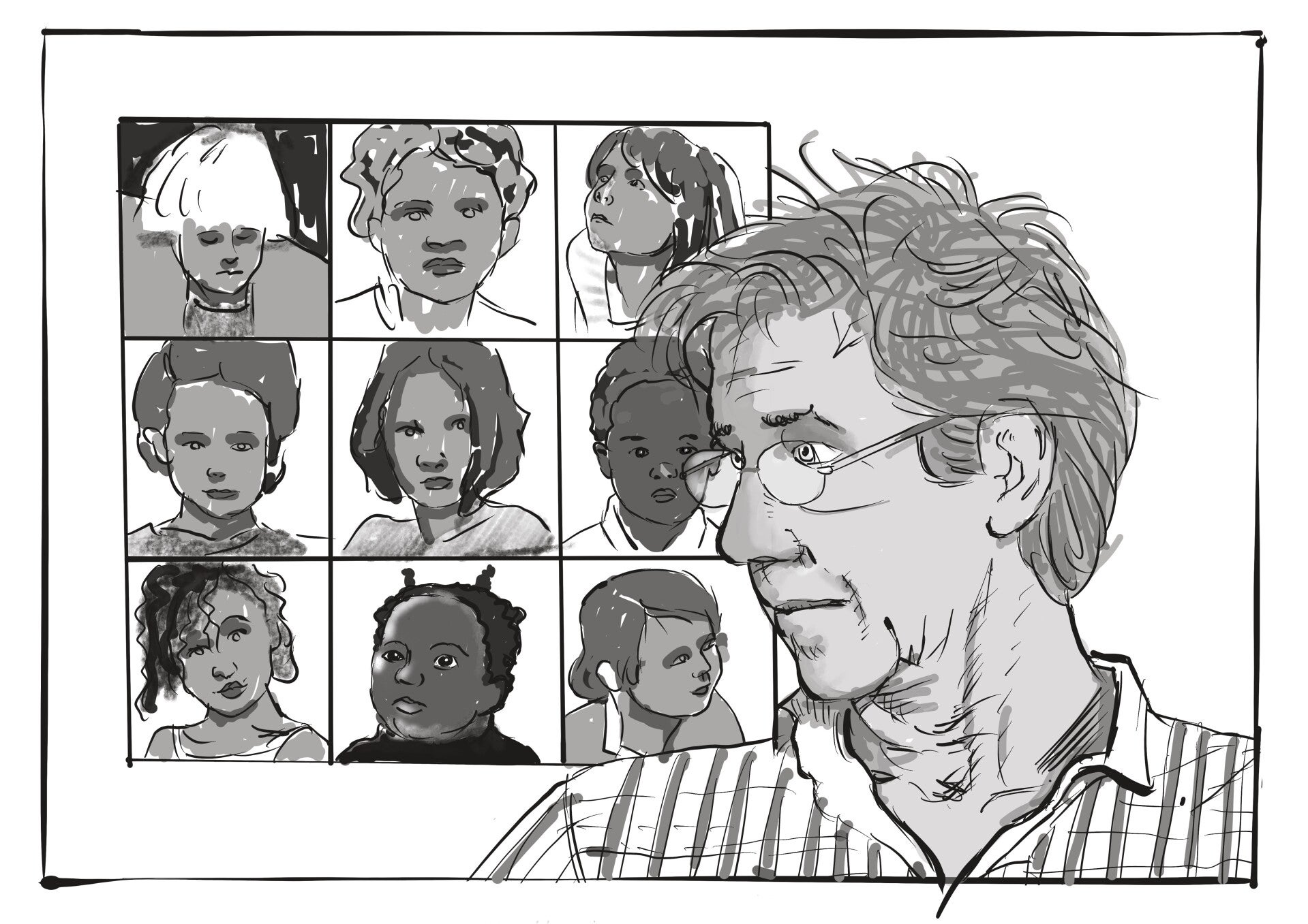 Van de commissie van beoordelaars / docenten heb ik een tekening gemaakt. Allemaal met een foto van hen die ik op internet vond (soms van jaren terug), en op de achtergrond een bewerking van iets wat ze zelf gemaakt hebben. Getekend met Procreate, formaat A3.