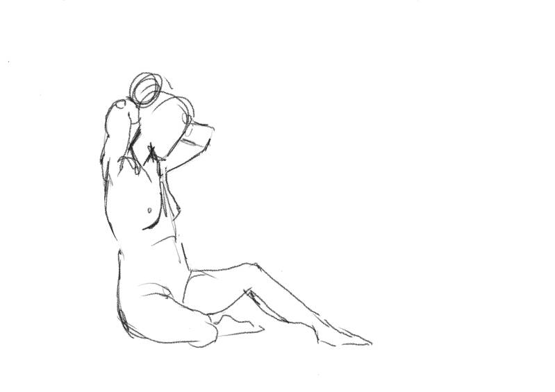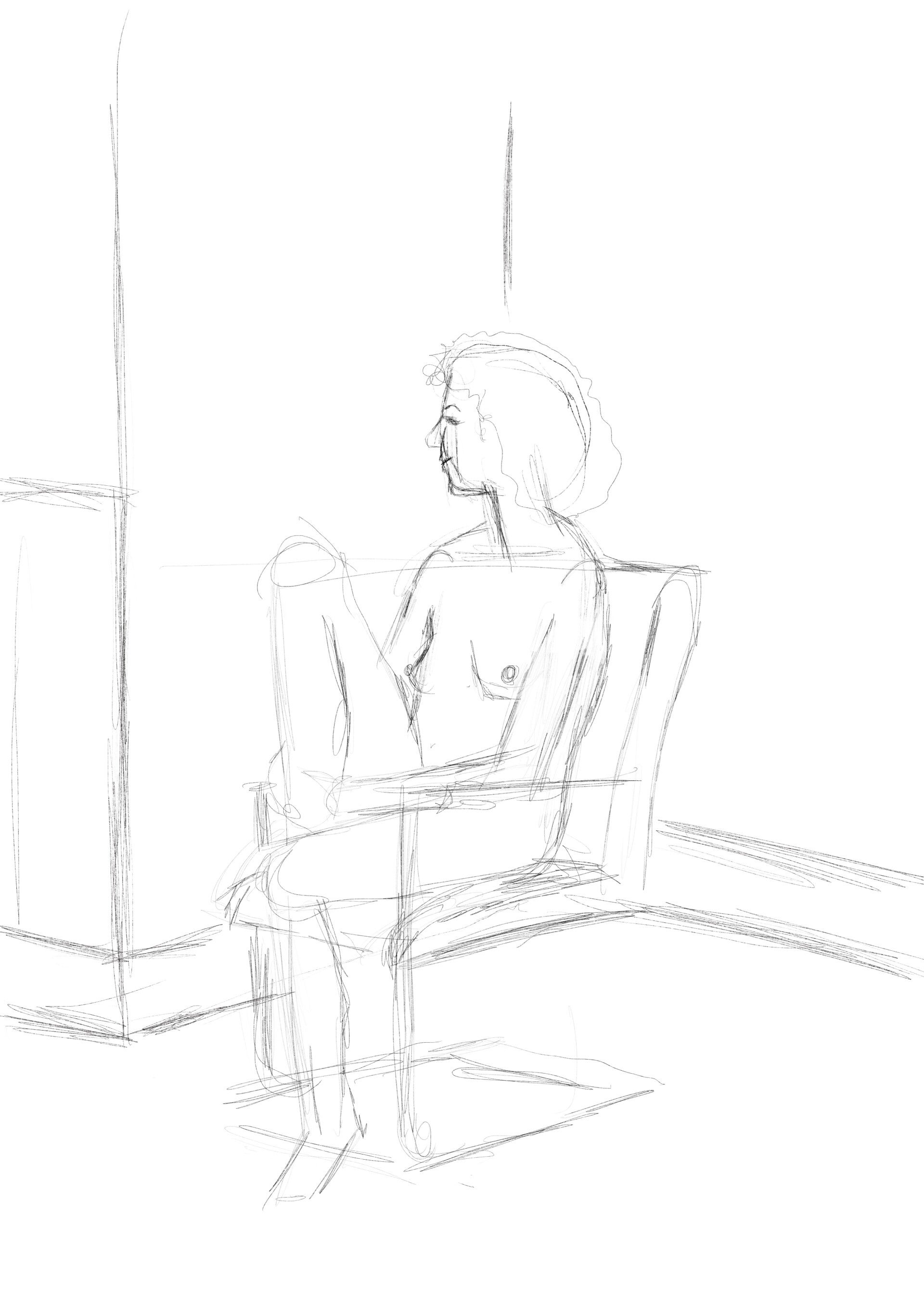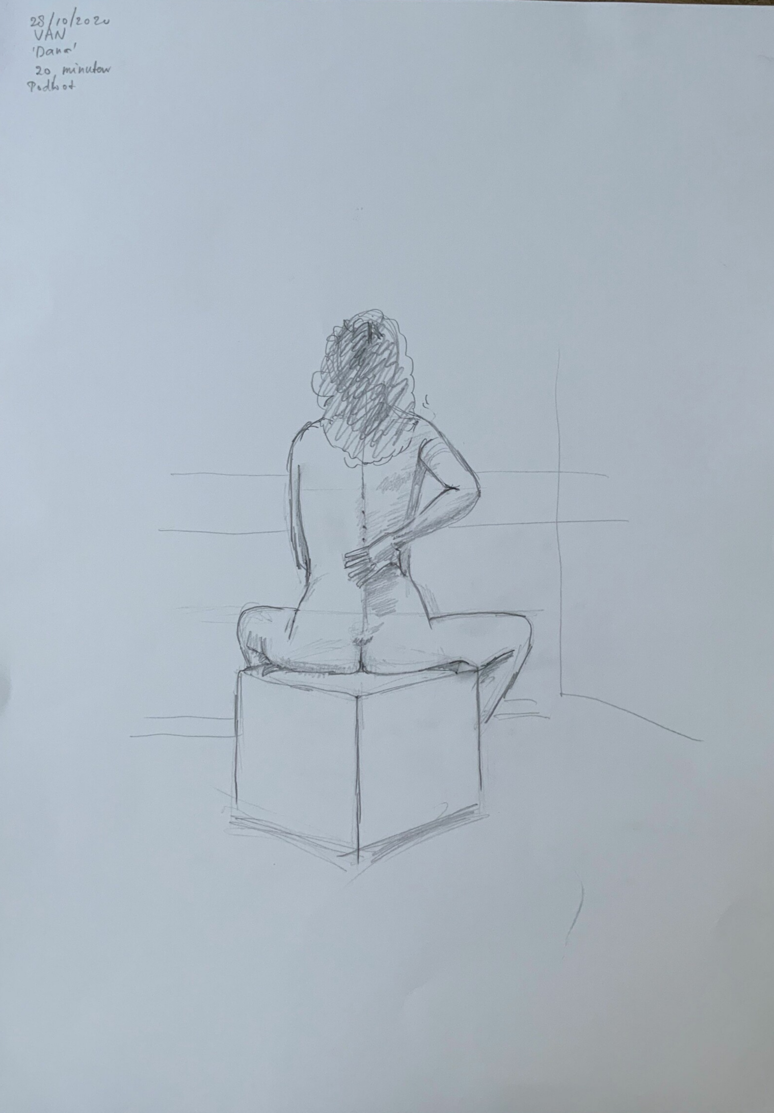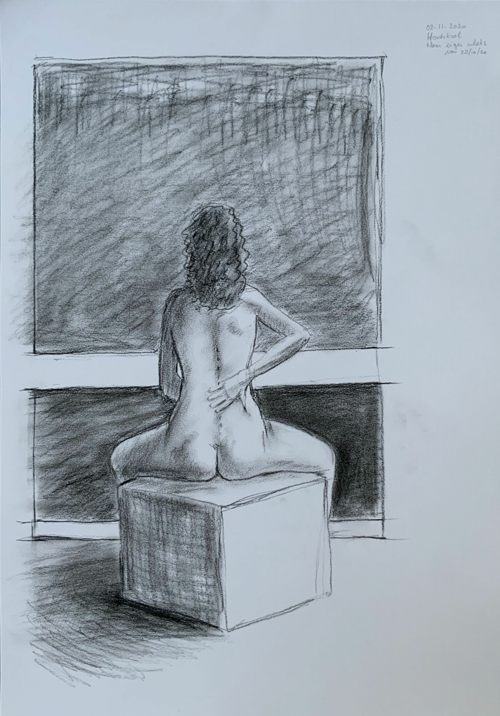 20 Minuten schets met podlood, thuis met houtskool opnieuw uitgevoerd: