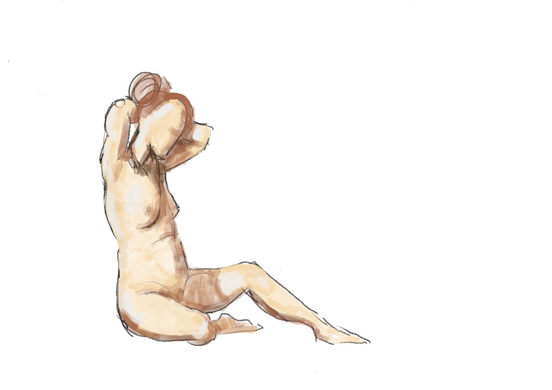 Een aantal lessen hebben we getekend (of geschilderd) naar (on-)gekleed model.