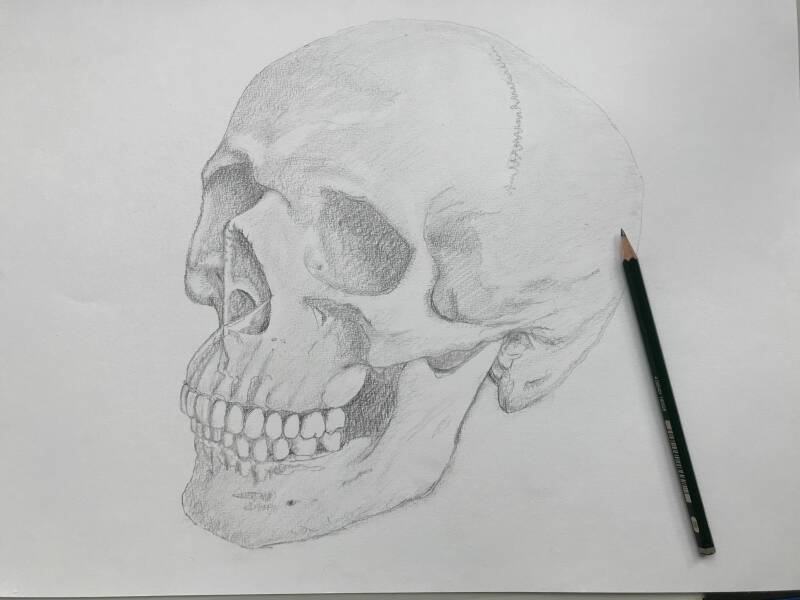 Naar een voorbeeld van een schedel die bij de Academie ligt: